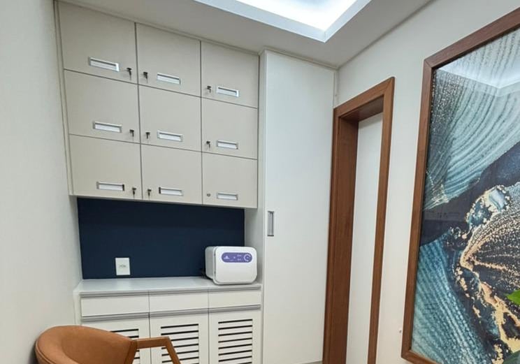 Pensado para oferecer conforto e praticidade nos intervalos entre atendimentos com frigobar exclusivo para armazenamento de produtos.